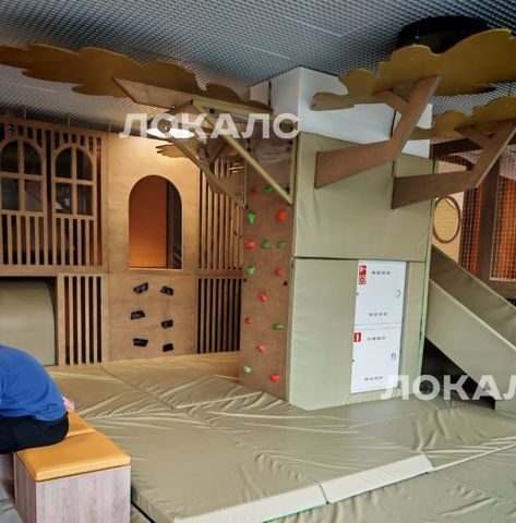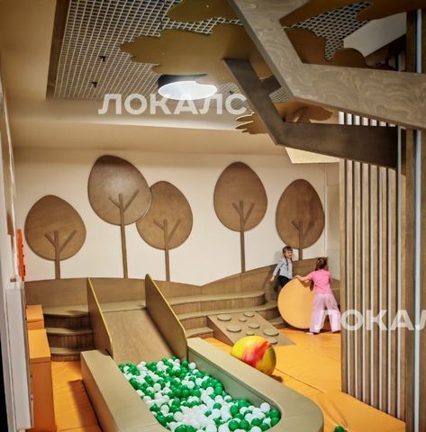 Закрытый просторный двор с большой детской площадкой, в зоне ресепшен есть колясочная,+ детская игровая комната в теплом помещении и переговорная зона с мягкими диванами.