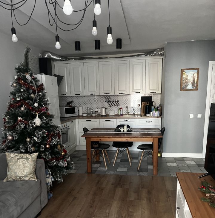 Квартира продается со встроенной кухней (Lorena) и частично с мебелью и техникой- посудомоечная машина, вытяжка, варочная панель и духовой шкаф.