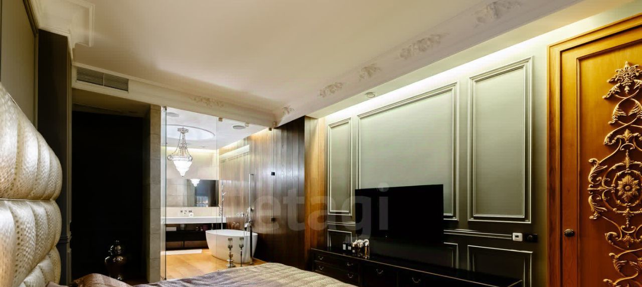 - В мастер спальне шикарный санузел с ванной и душевой. Так же большая гардеробная комната, оборудованная мебелью и удобной системой хранения с подъемными механизмами.
