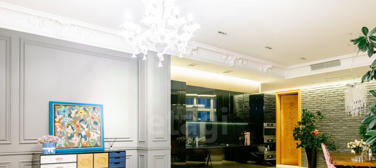 - Квартира обставлена мебелью от мировых брендов: Baxter, Poltrona Frau, Chellini, Fendi, Barovier&Tosa, Philippe Starck, кухня немецкая Boffi.