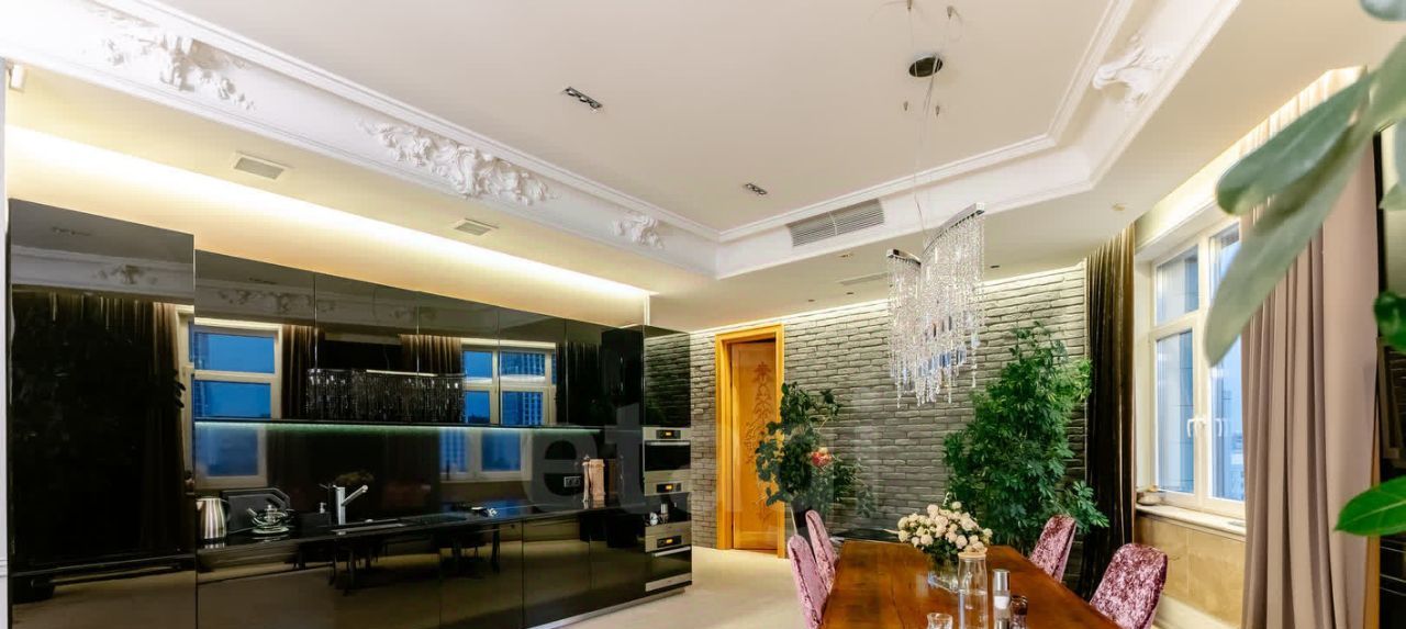 В аренду предлагается просторная квартира с дизайнерским ремонтом, обставлена дорогой мебелью, декором и предметами искусства.
