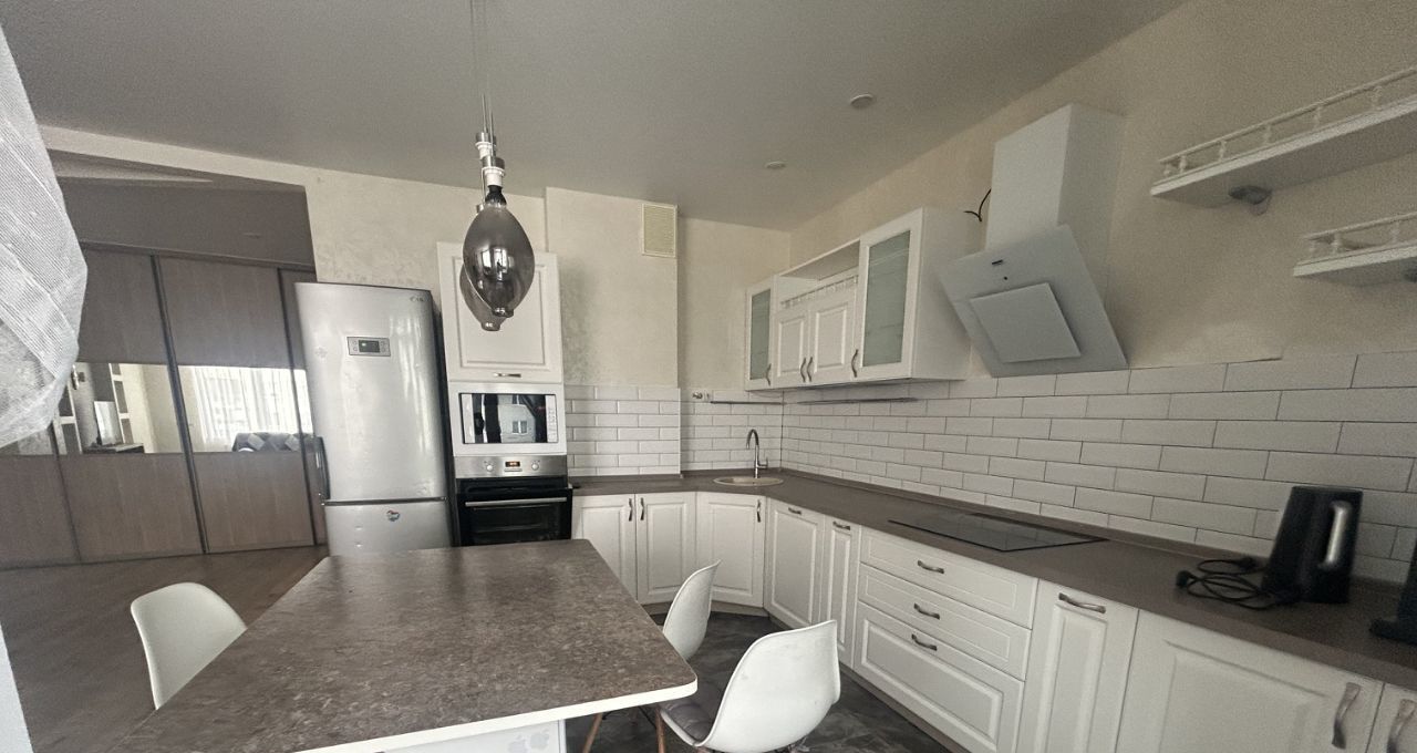 Мебель и техника во всех комнатах (5 спальных мест, кухонный гарнитур с плитой, дух.шкафом, посудомойкой, вытяжкой, холодильник и стиральная машина, чайник, кофе-машина). Вся техника рабочая. Сдаем на длительный срок.