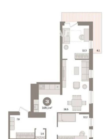 3-к кв. Свердловская область, Екатеринбург ул. Пехотинцев, 2Г (109.1 м²)