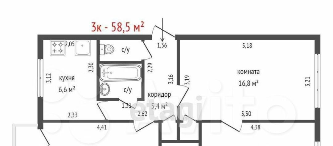 3-к кв. Свердловская область, Екатеринбург ул. Таватуйская, 12к2 (55.0 м²)