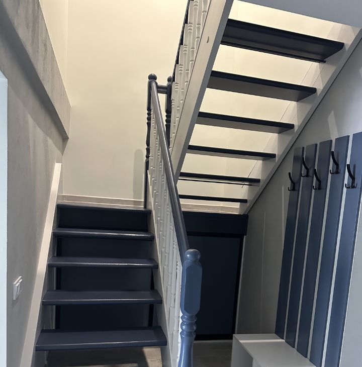 Двухуровневая квартира в самом центре города. На первом этаже гостиная, кухня и ванная комната с душевой кабиной, на втором этаже спальня, детская, ванна комната с ванной и гардеробная.