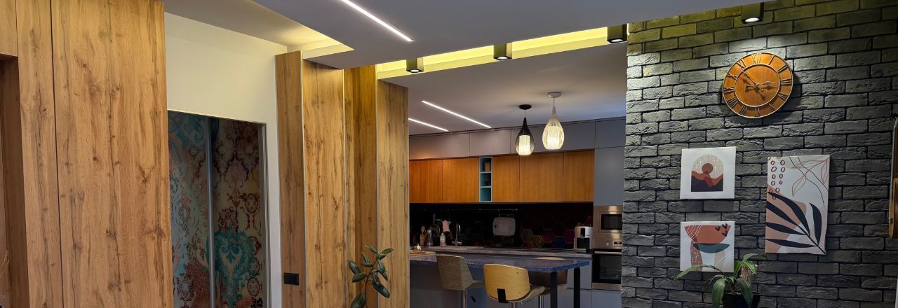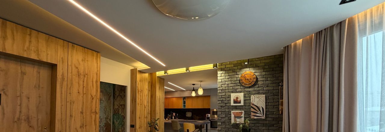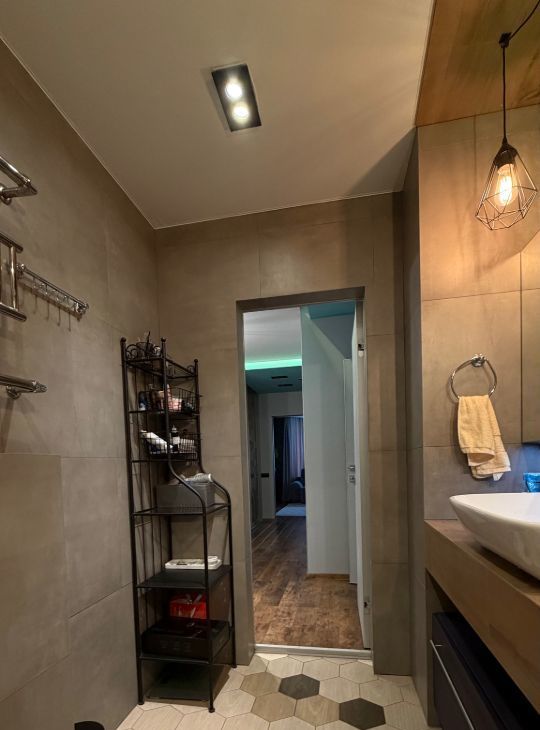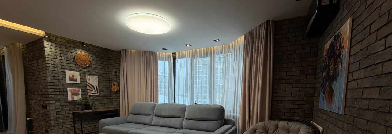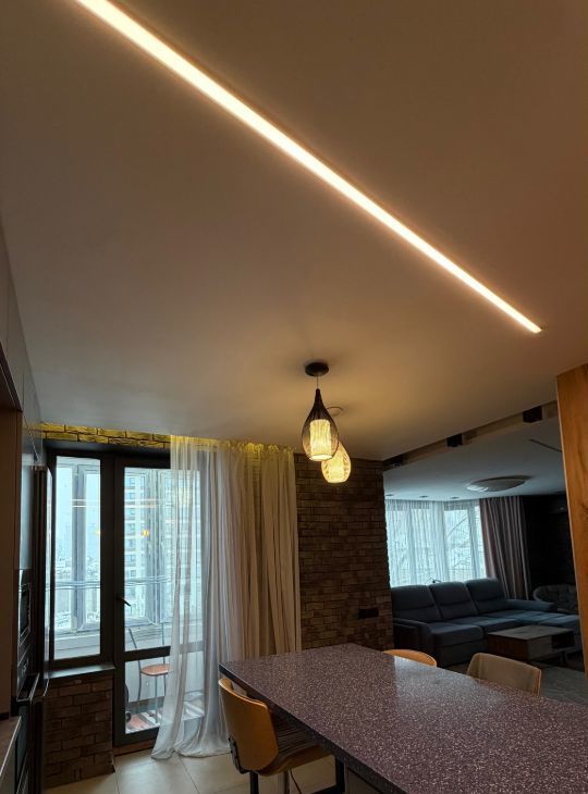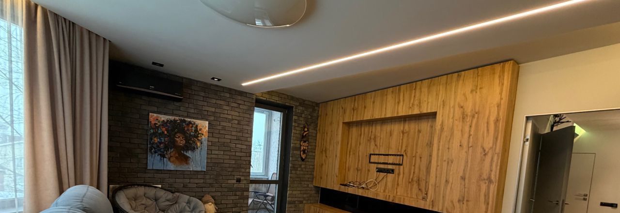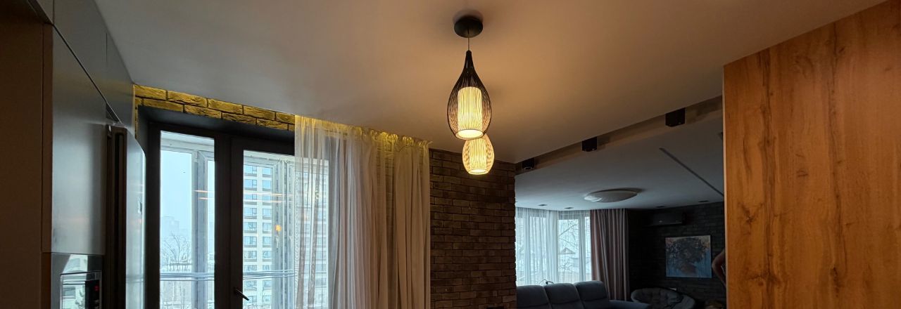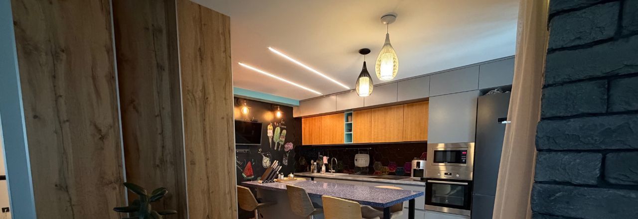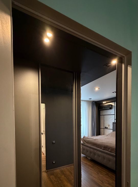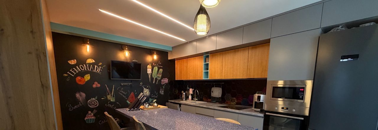 В квартире сделан дизайнерский ремонт, использованы качественные материалы. Заменены все трубы отопления, установлены фильтра для очистки воды. В спальне и гостиной имеются кондиционеры. Установлен резервный 120 литровый бойлер для горячей воды. На кухне черная меловая стена для Ваших фантазий, а также скрытый большой шкаф слева от острова.