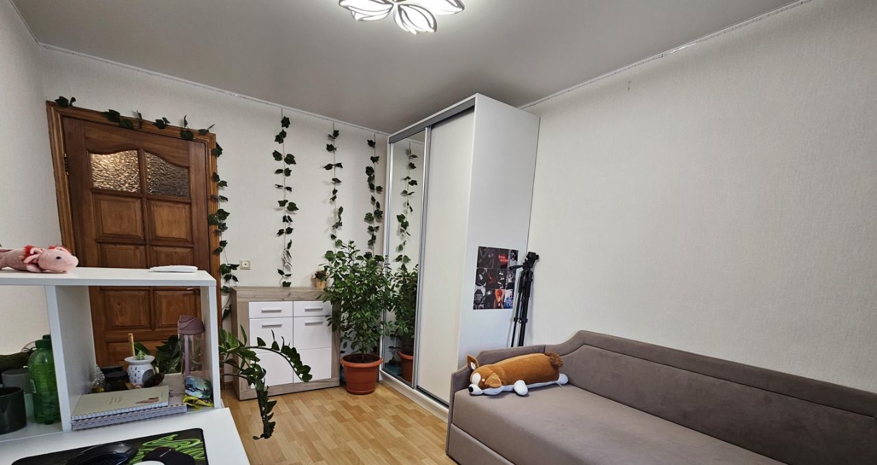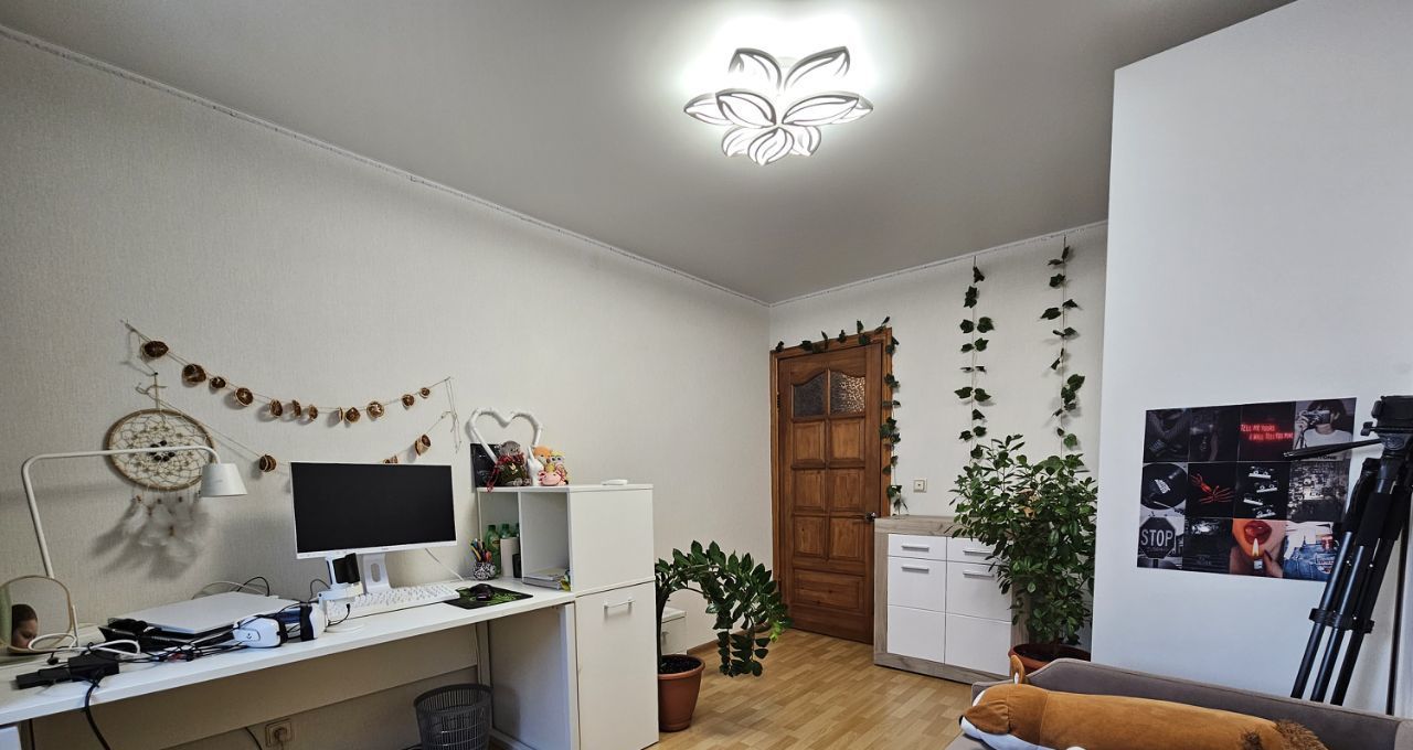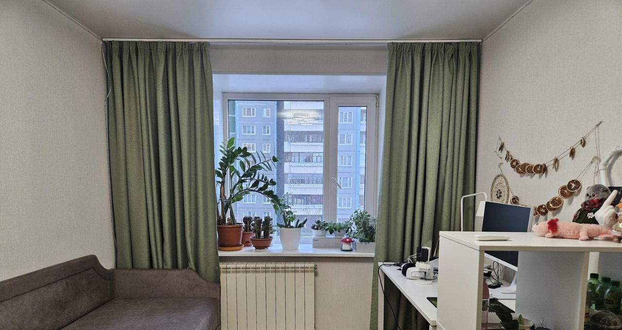 В детской 11,5 м.кв. сделан свежий ремонт - рабочее место, шакф-купе, диван-кровать.