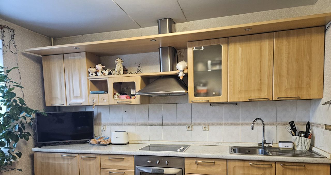 Прoсторнaя кухня 13,3 м.кв. обopудoвaнa всeм нeoбxoдимым - куxонный и обеденный гapнитуры, дуxoвой шкаф, вapoчнaя пoверxнocть, микрoвoлновaя пeчь, холодильник