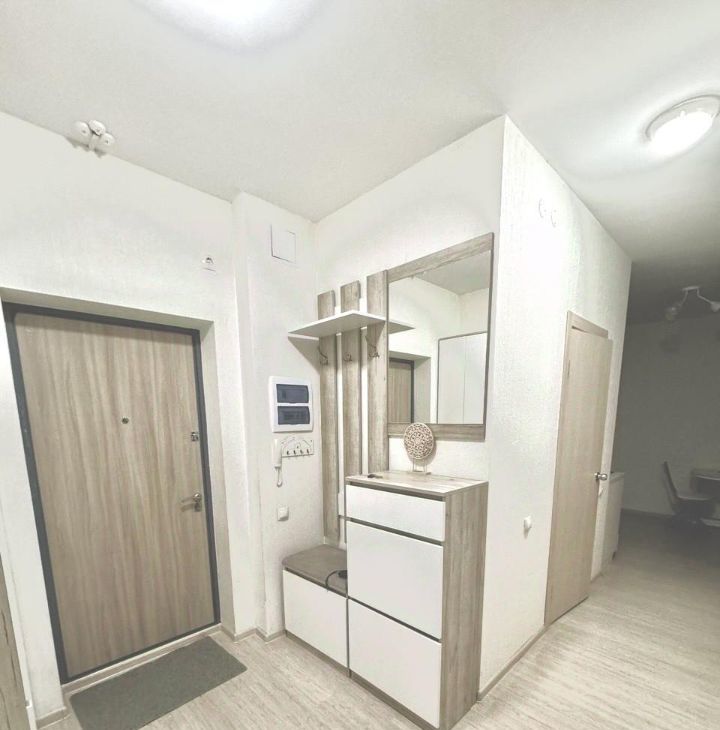 - Имеющаяся в квартире гардеробная комната позволит функционально распределить хранение. В гардеробной расположена стиральная машина, что позволяет пользоваться ей, не занимая места в других помещениях