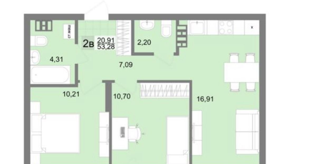 Современная квартира с двумя спальнями и просторной кухней гостиной. Прекрасное сочетание комфорта и простора подарит радость жизни каждому члену семьи.