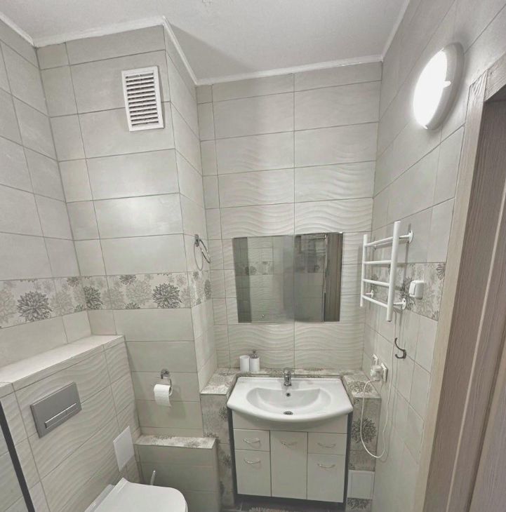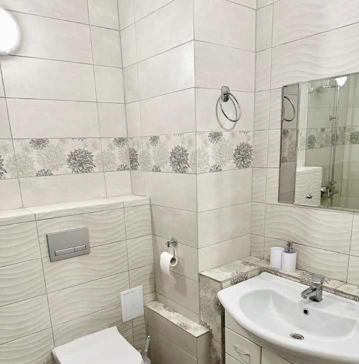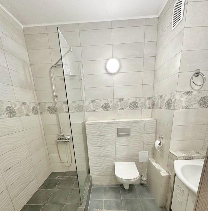 - В санузле выполнен ремонт с использованием керамогранита, так же санузел оборудован качественной сантехникой