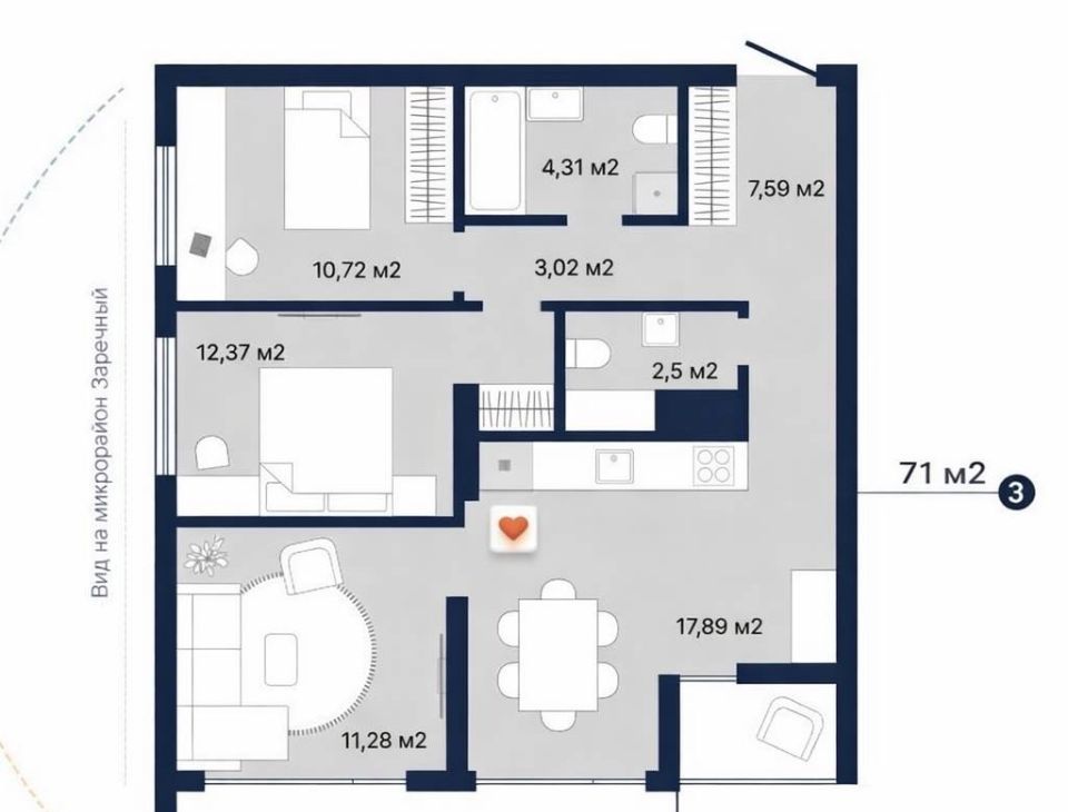 2-комнатная квартира: Екатеринбург, улица Старых Большевиков, 3 (62 м²)