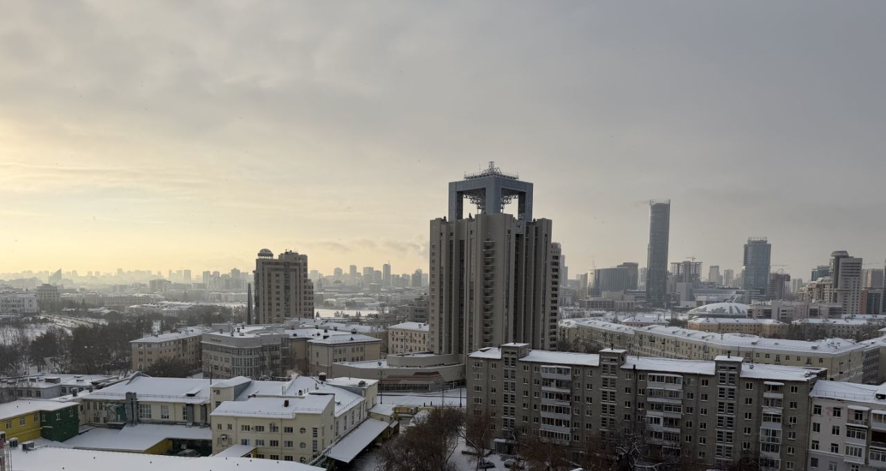 Из окна открывается вид на Башню Исеть, Высоцкий, храм на крови, дивс.