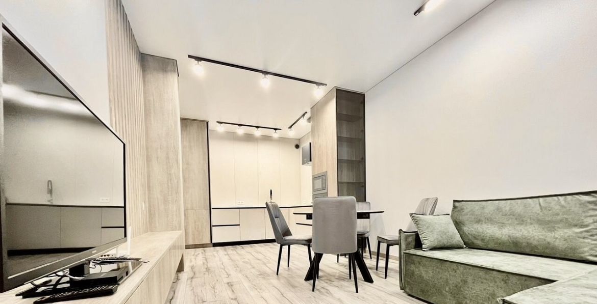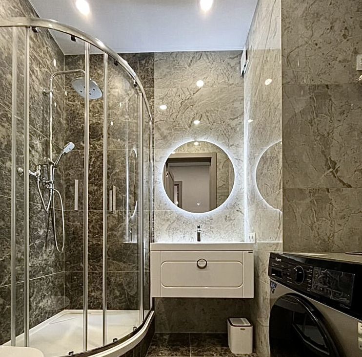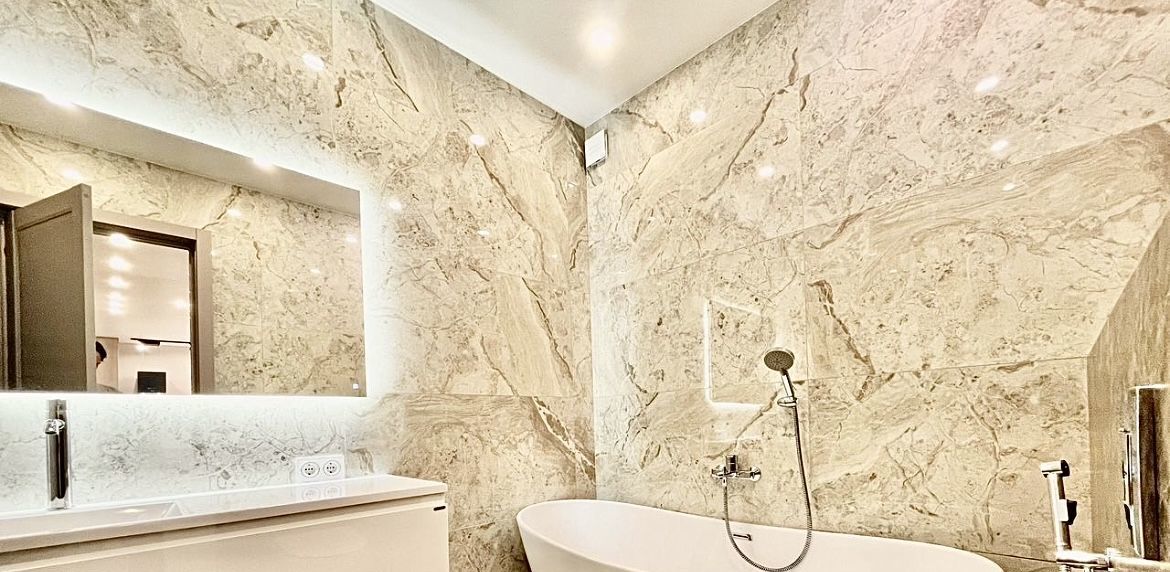 В квартире сделан дизайнерский ремонт, который создаёт атмосферу уюта и современности. В наличии вся необходимая мебель на кухне и в комнатах. Совмещённые санузлы оснащены ванной и душевой кабиной. Из техники имеются кондиционер, холодильник, посудомоечная и стиральная машины, а также телевизор. Это позволяет сразу заселиться и наслаждаться комфортом.
