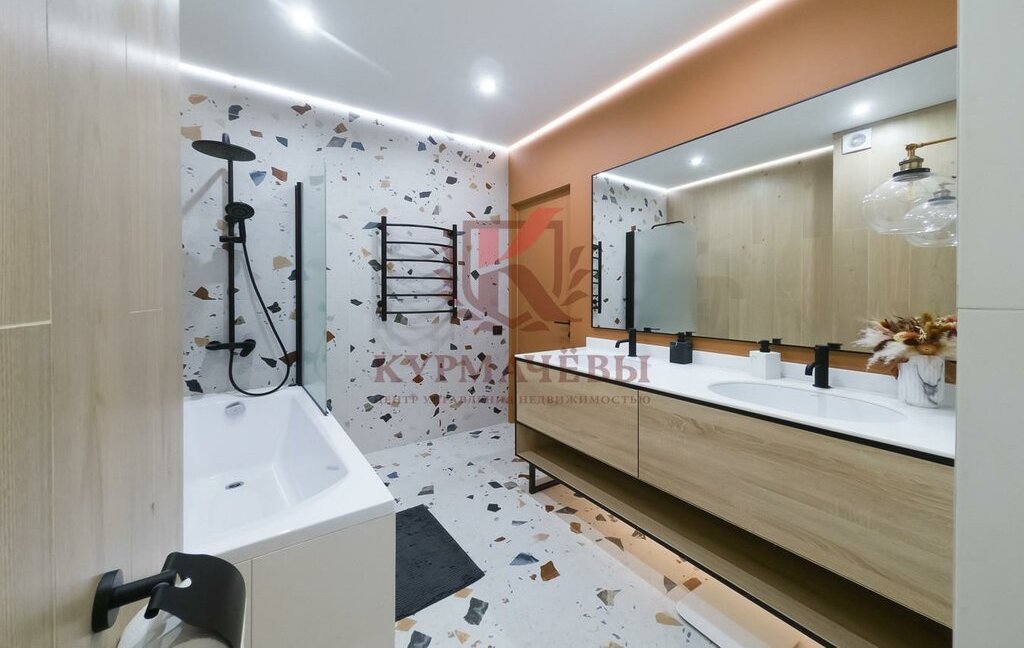 Большая кухня-гостиная + 2 изолированные комнаты, большой балкон, есть вся необходимая мебель и техника для комфортного проживания: холодильник, посудомоечная машина, стиральная и сушильная машина, системы хранения, два раздельных санузла.