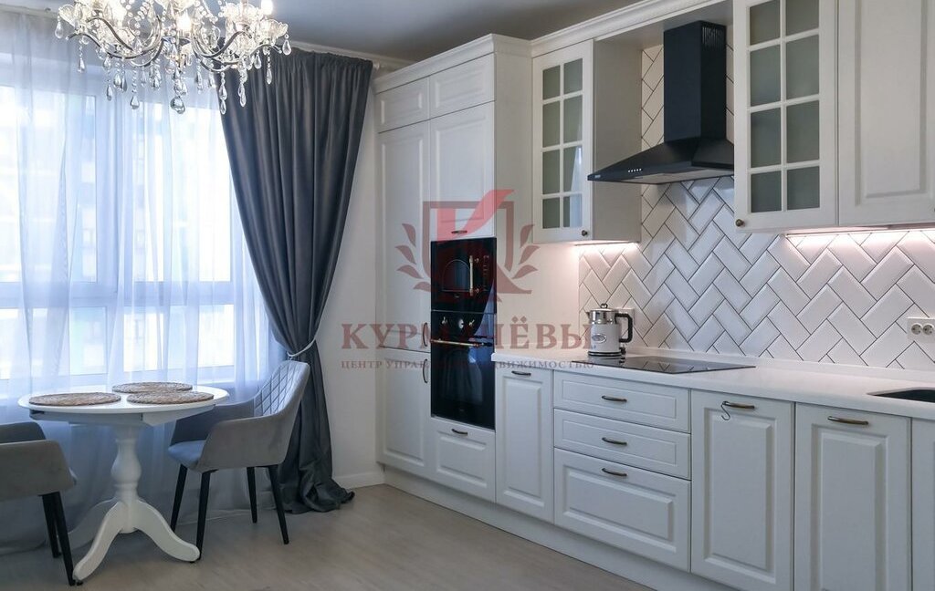 - Кухонный гарнитур со встроенной техникой, холодильник, посудомоечная машина, СВЧ-печь, стиральная и сушильная машина,