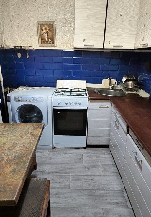 Есть: кухонный гарнитур, стол, стиральная машина, диваны, кресло, журнальный стол, подставка под ТВ, 2-х спальная кровать, письменный стол, шкаф.