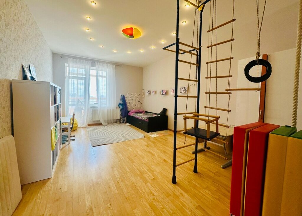 В кухне -гостинной современный гарнитур и техника, на просторной лоджии можно пить утренний кофе и наслаждаться видами, в спальне - классическая мебель, 2 просторные детские комнаты для детей разного возраста.