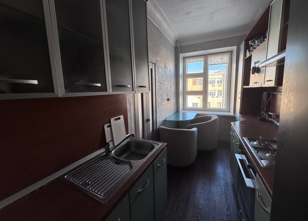 Высокие потолки и толстые кирпичные стены создают атмосферу настоящей сталинской архитектуры: тепло зимой, прохладно летом и отличная шумоизоляция.