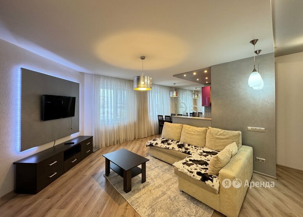 Сдаётся 3-комнатная квартира площадью 84 кв.м. с дизайнерским ремонтом на 6 этаже в 19-этажном доме на срок от 11 месяцев. Из техники есть: