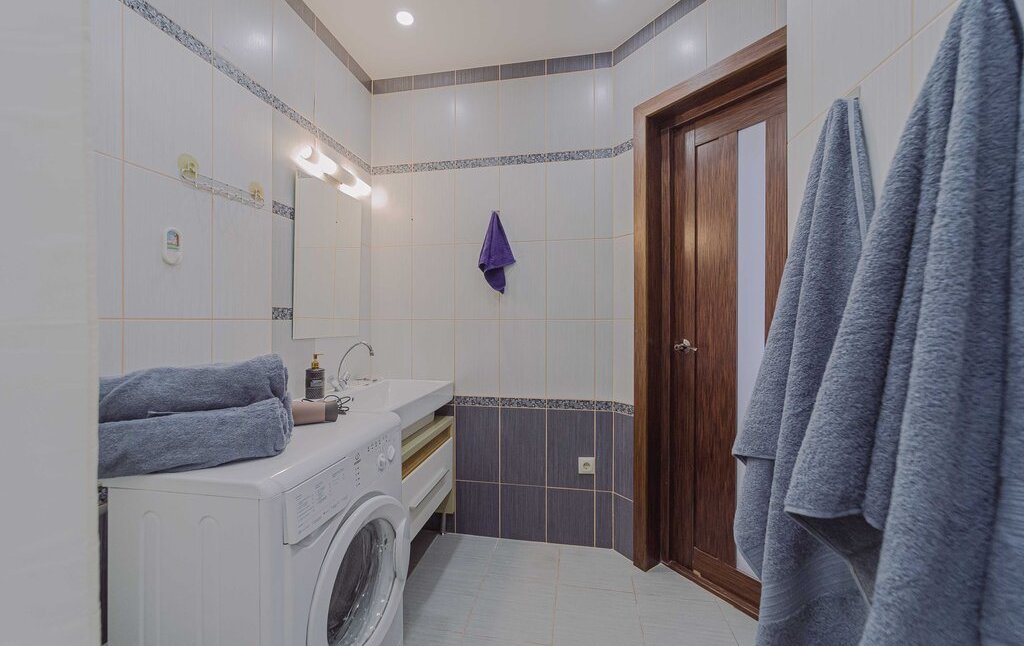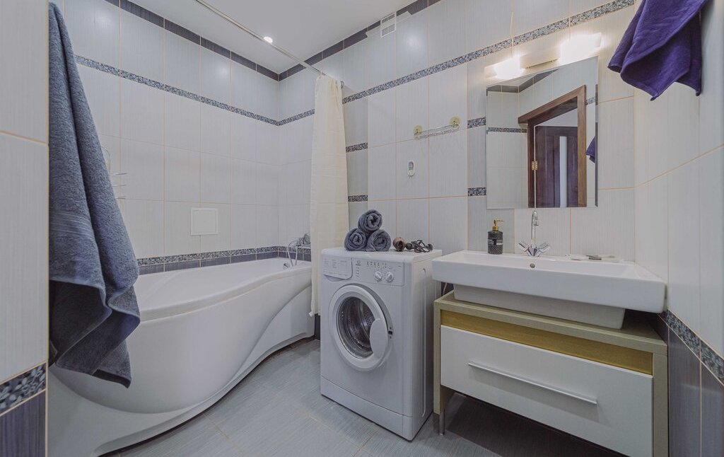 Раздельный санузел. Ванна, стиральная машина.
