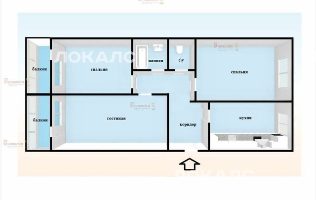 3-к кв. Свердловская область, Екатеринбург ул. Металлургов, 32 (74.0 м²)