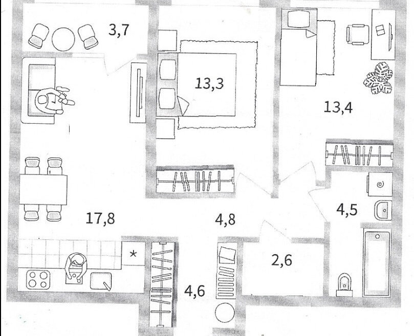 две уютные спальни (одну укомплектуем мебелью по вашим пожеланиям — она пока свободна);
