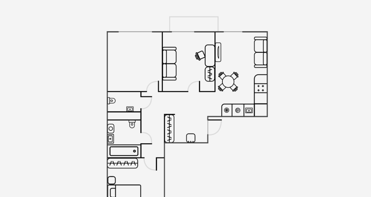 В квартире предусмотрен полный комплект мебели для жизни: