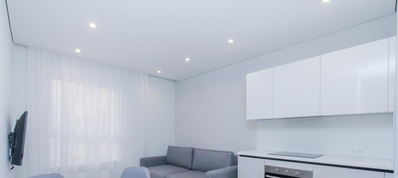 Квартира с индивидуальным интерьерным решением в современном стиле, качественной отделкой, мебелью и техникой для жизни от ведущих брендов (Hotpoint, LG):