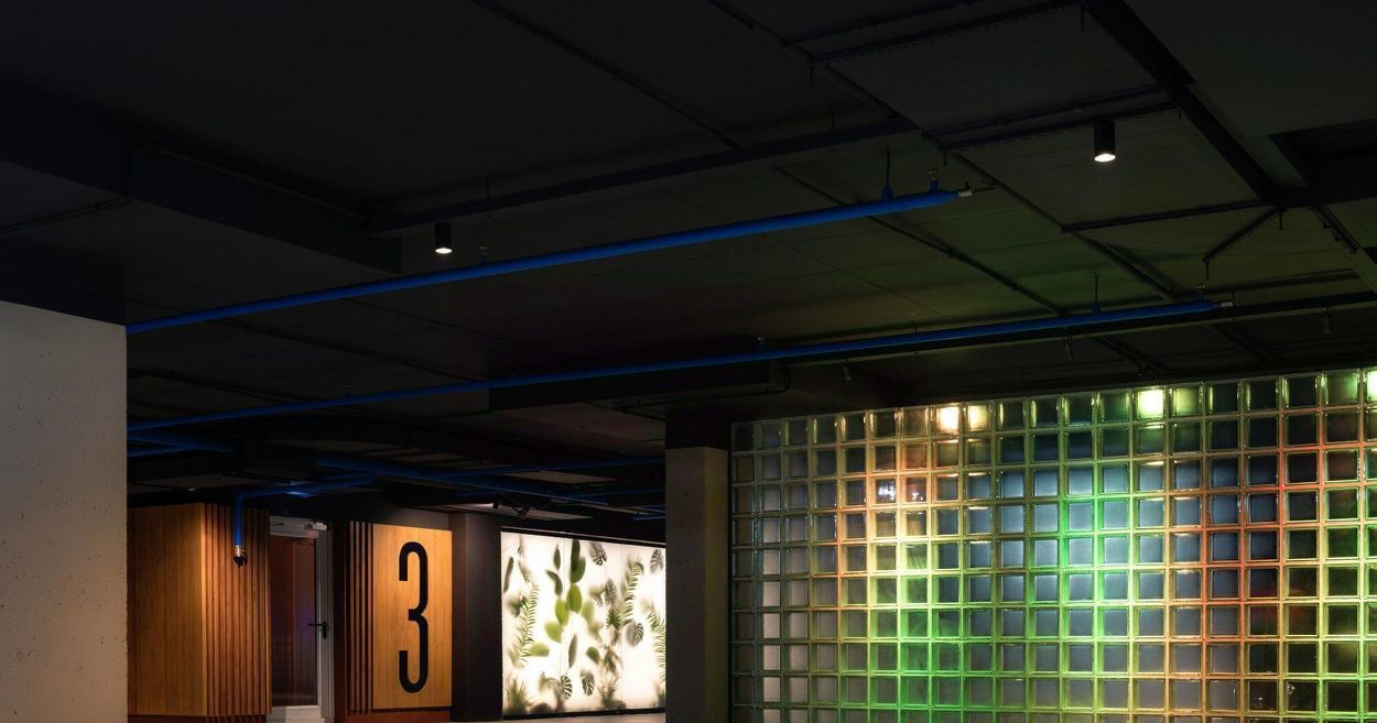 В студии два совмещенных санузла: один с ванной, стиральной машиной, а также раковиной с зеркальной подсветкой, другой- с туалетом и раковиной с зеркальной подсветкой.