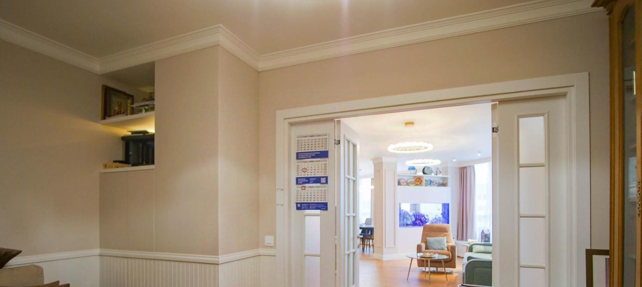 В квартире произведён ремонт в 2021 году в точности по дизайн-проекту, начиная от инженерных сетей и заканчивая подбором мебели, света и всех интерьерных решений.