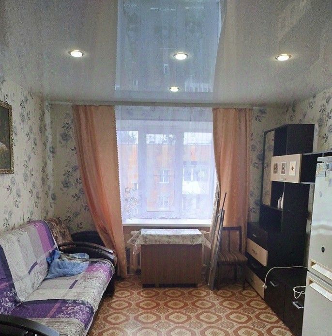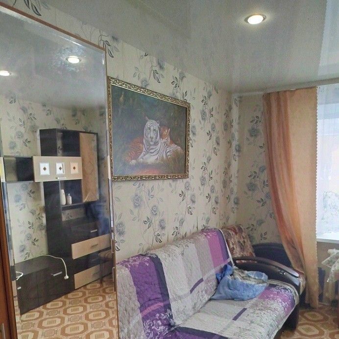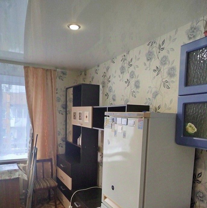 Комната светлая, теплая, уютная. Натяжные потолки с точечными светильниками, пластиковый стеклопакет. Имеется необходимая для проживания мебель, бытовая техника (диван раскладной, шкаф, стенка мебельная, холодильник, электроплитка, кухонный гарнитур и т.п.). Секция на четыре комнаты. Санузел раздельный.