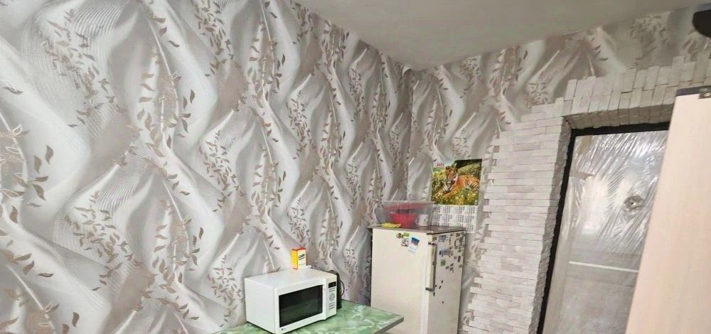 квартира на 1-м этаже, 17.5 кв.м, очень тёплая, установлены тёплые полы, из мебели есть диван, шкаф в комнате, шкаф для верхней одежды, стол, холодильник, телевизор,