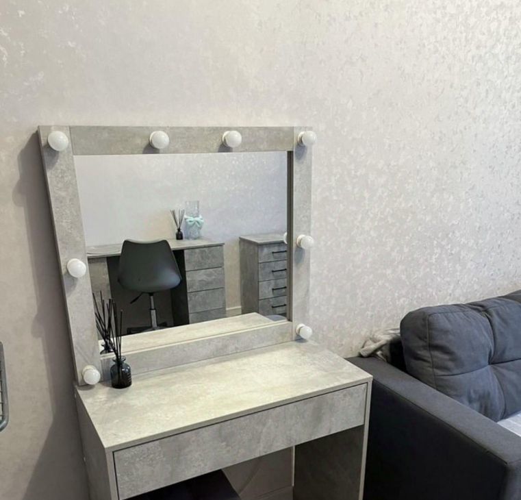 Из мебели: диван, комод, шкаф, стол компьютерный, стул компьютерный, туалетный столик с зеркалом и подсветкой, пуфик.