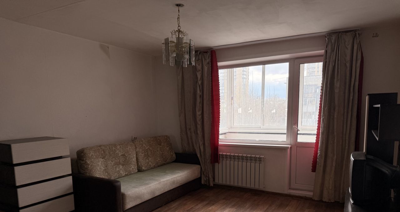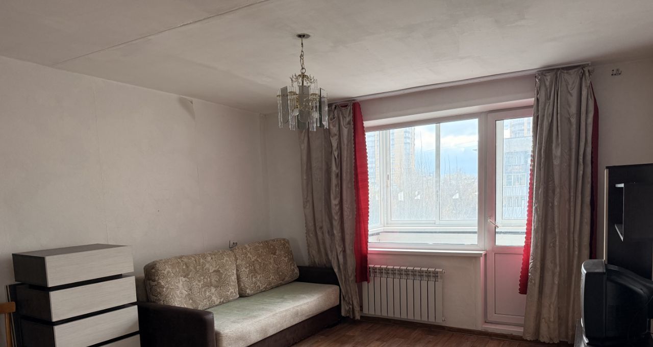 Самая большая комната в квартире 22 метра. Комната светлая, просторная, с застекленным балконом и всей необходимой мебелью.