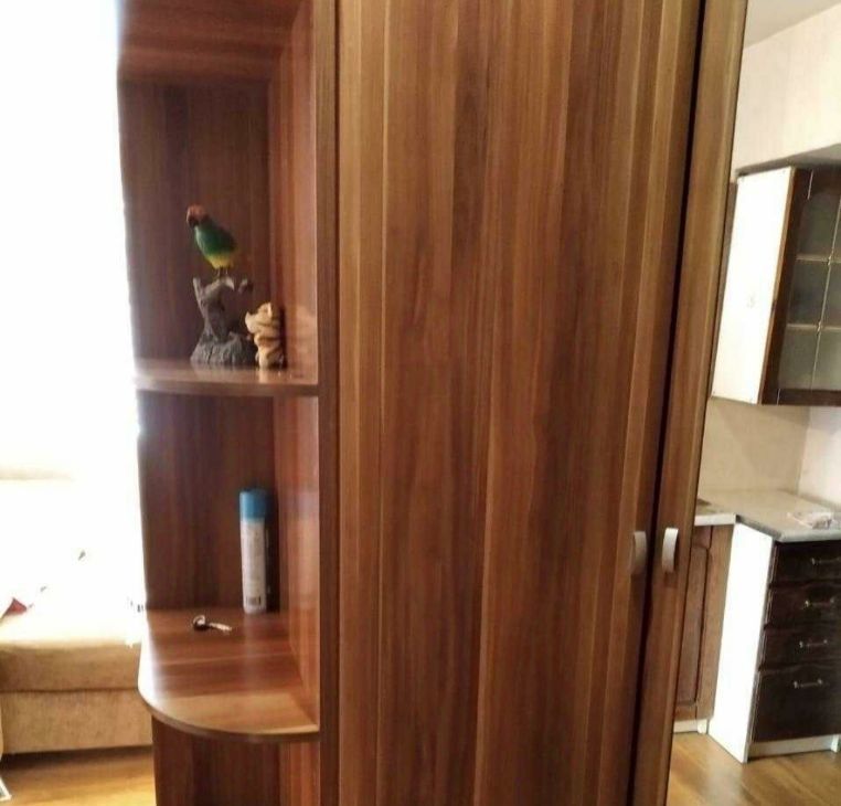 Комната в малосемейке (жить ни с кем не надо-это как студия, входная дверь железная), ремонт, пластиковые окна, ламинат, холодильник, стиральная машинка, шкаф-купе, телевизор, угловой раскладной диван, кухонные шкафчики.