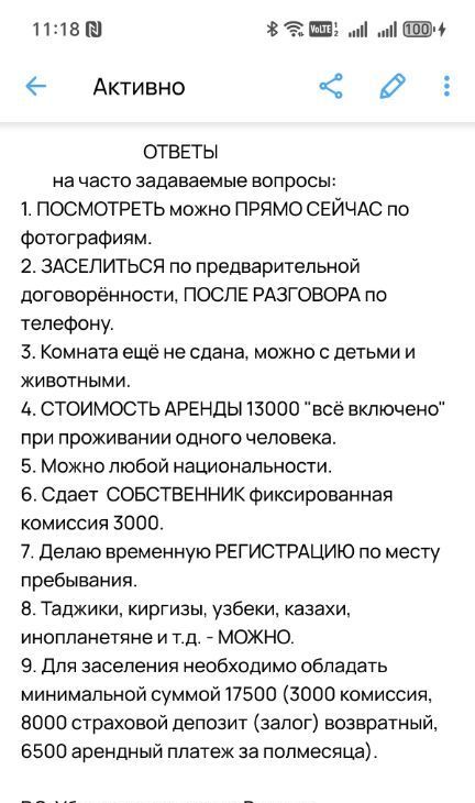 Мне лучше Звонить исключительно по заселению, на сообщения отвечаю редко.