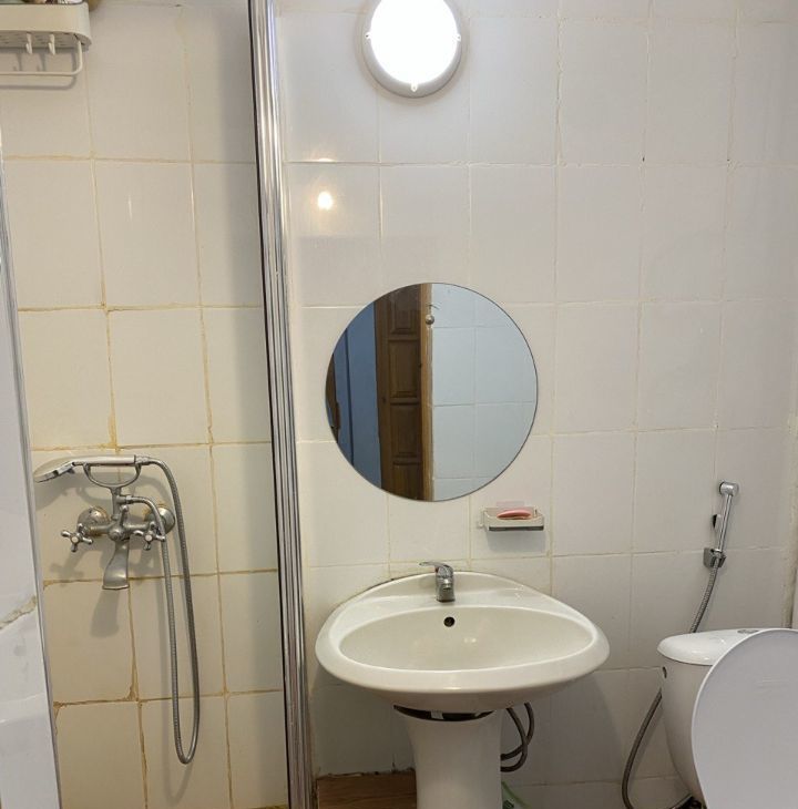 есть стиральная машина, холодильник.Общие душ и туалет.