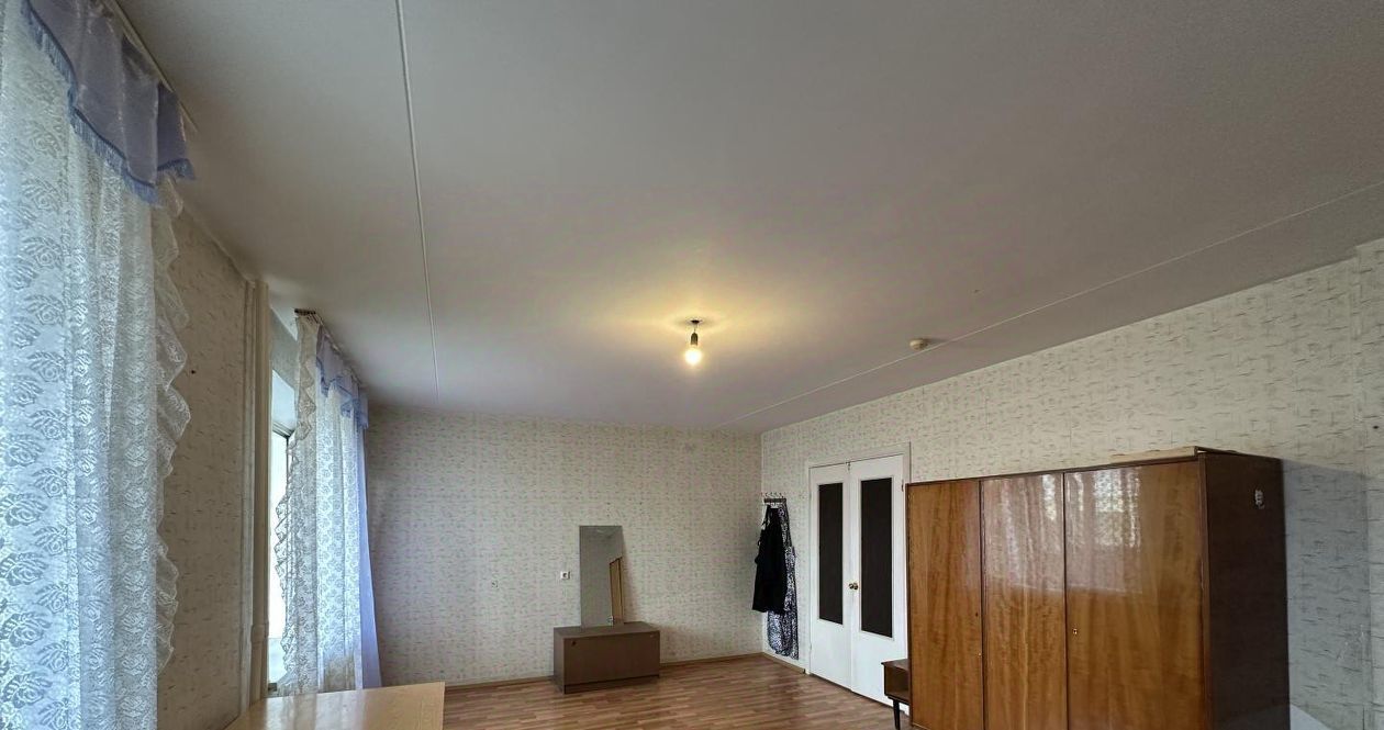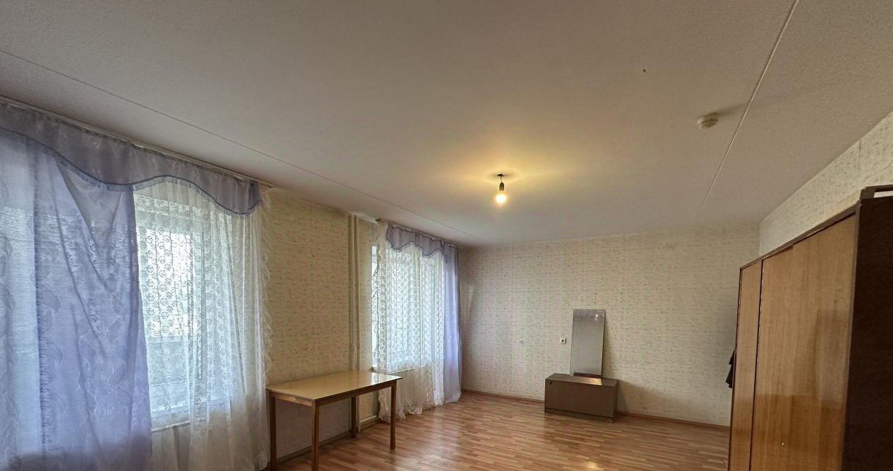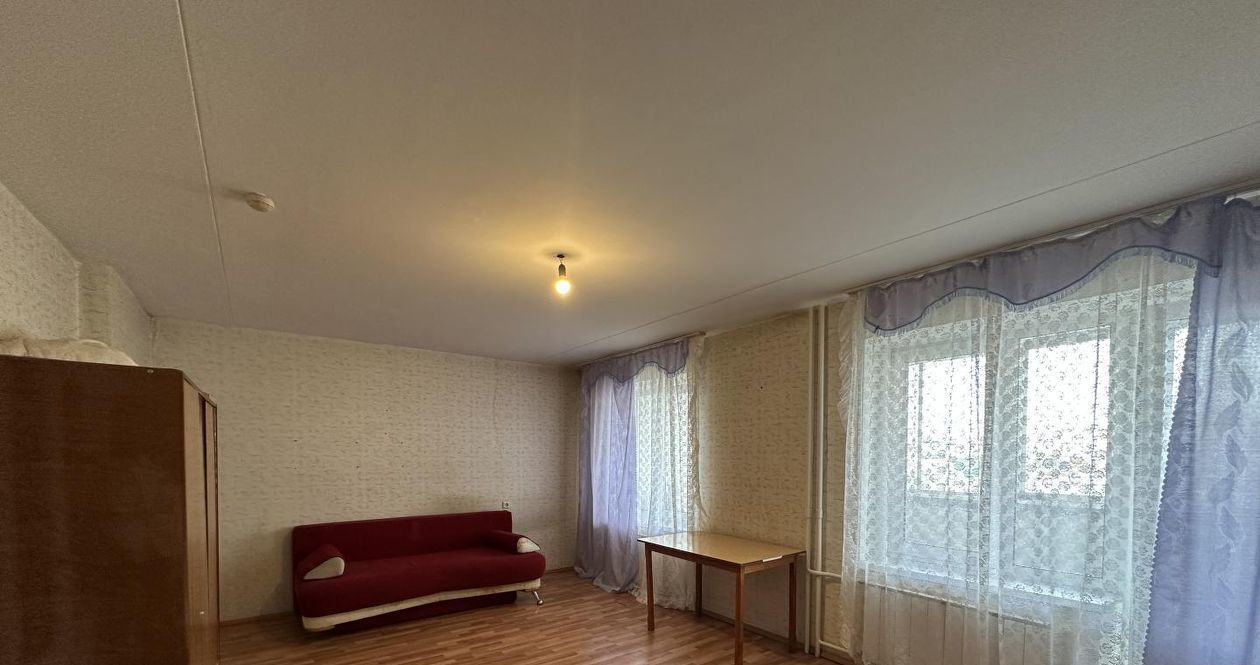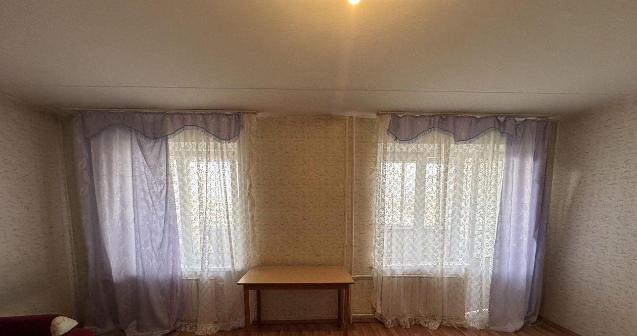 Комната - 25 кв.м., большая, светлая. Есть диван, стол, шкаф, журнальный столик, шторы. Своя застеклённая лоджия. Комната закрывается на ключ.