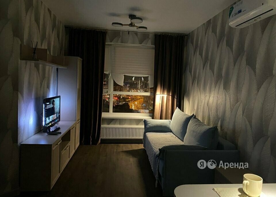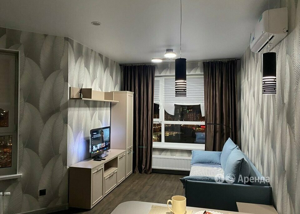 Сдаётся студия площадью 26 кв.м. с дизайнерским ремонтом на 26 этаже в 31-этажном доме на срок от 11 месяцев. Из техники есть: