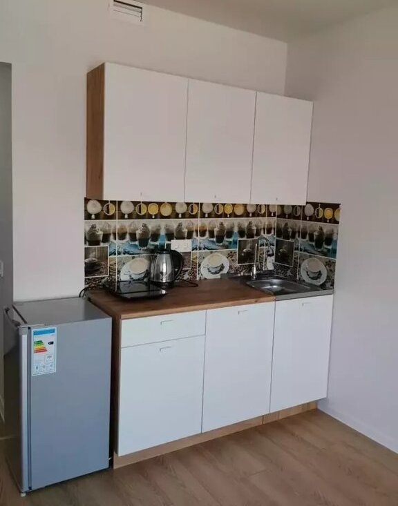 - Полная комплектация: Холодильник, удобный раскладывающийся диван, современный кухонный гарнитур, электроплита, сол и стулья, телевизор, вешалка для одежды.