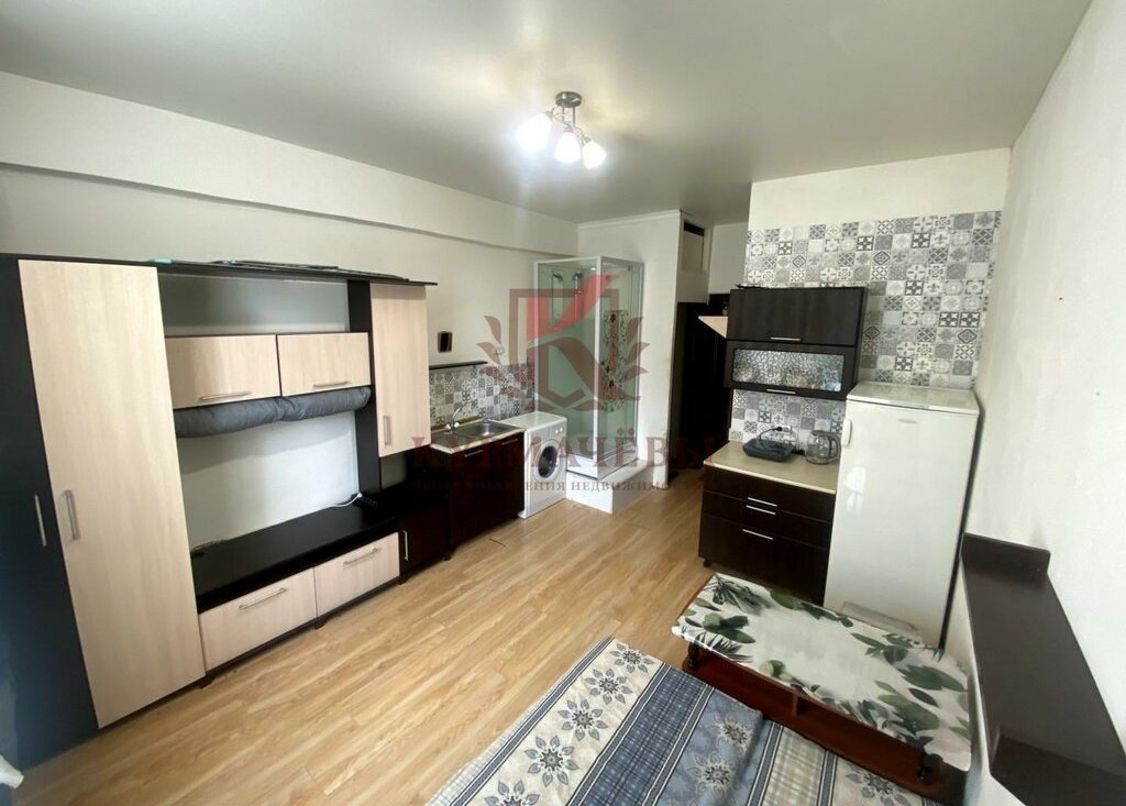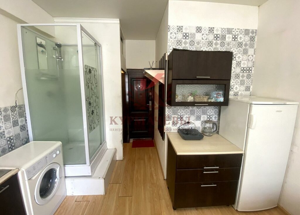 - индукционная плитка, электрический чайник, пылесос, утюг, небольшой холодильник, стиральная машина, душевая кабинка, туалет.