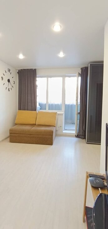 Студия оборудована всем необходимым для проживания. Есть холодильник, посудомойка, шкаф, два спальных места. Сдается на долгий срок. Коммунальные платежи оплачиваются отдельно.