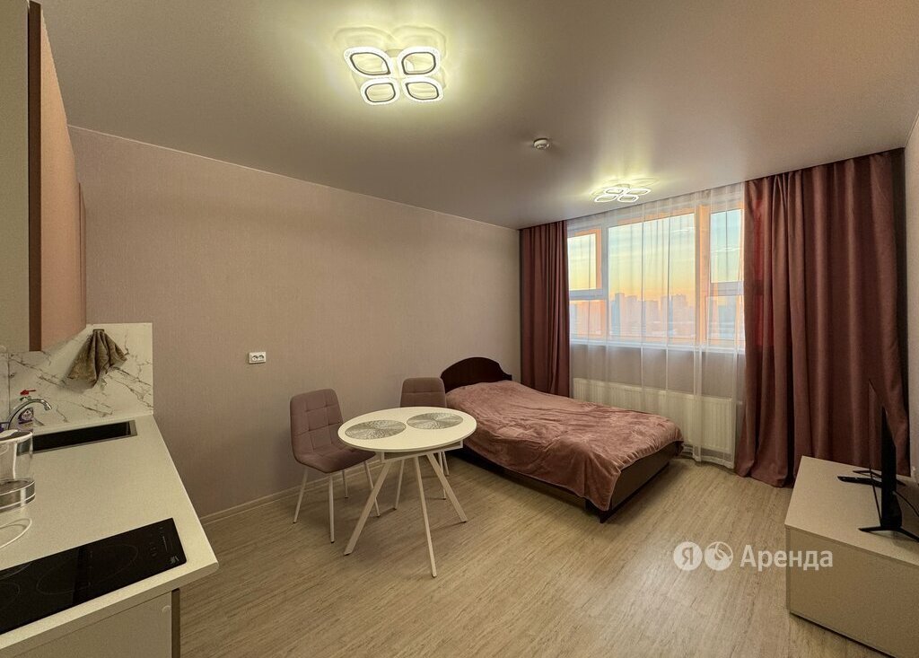 Сдаётся студия площадью 23 кв.м. с евроремонтом на 19 этаже в 28-этажном доме на срок от 11 месяцев. Из техники есть: