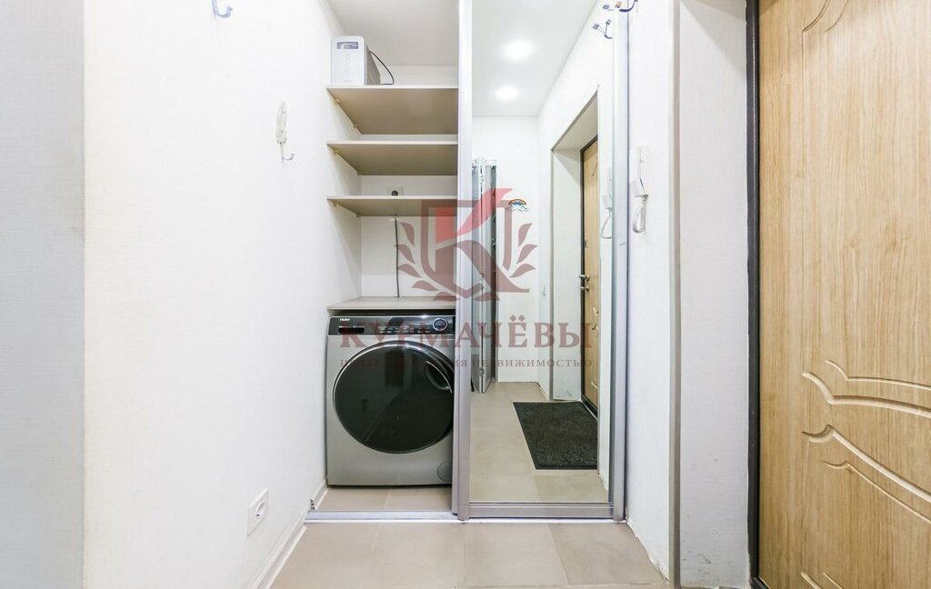 - в коридоре имеется вместительный гардеробный шкаф, где установлена стиральная машина. Небольшая гардеробная комната.