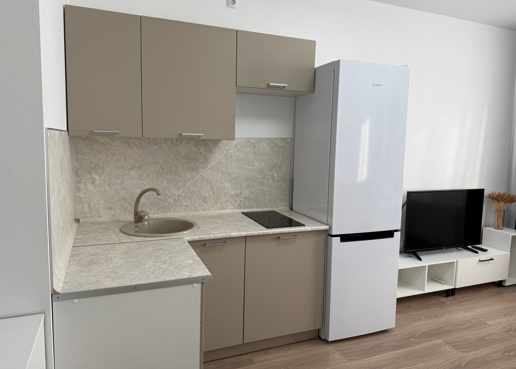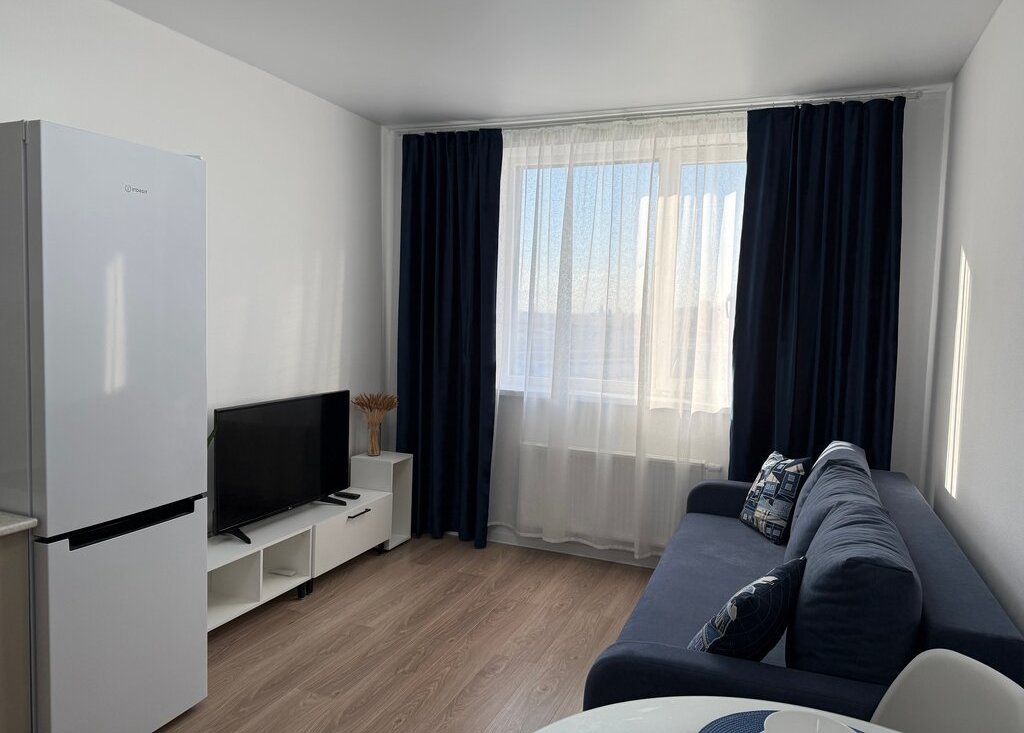 Кухня и комната полностью меблированы, а также укомплектованы необходимой бытовой техникой: холодильник, телевизор, стиральная машина.