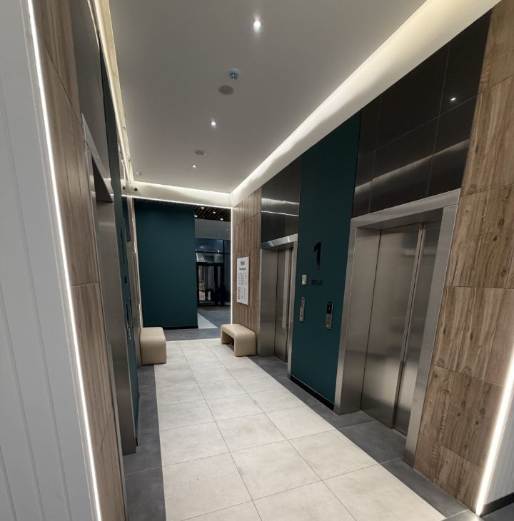 Дом новый, с двумя пассажирскими и двумя грузовыми лифтами, поэтому можно легко подняться на нужный этаж. Для владельцев автомобилей предусмотрена наземная парковка.
