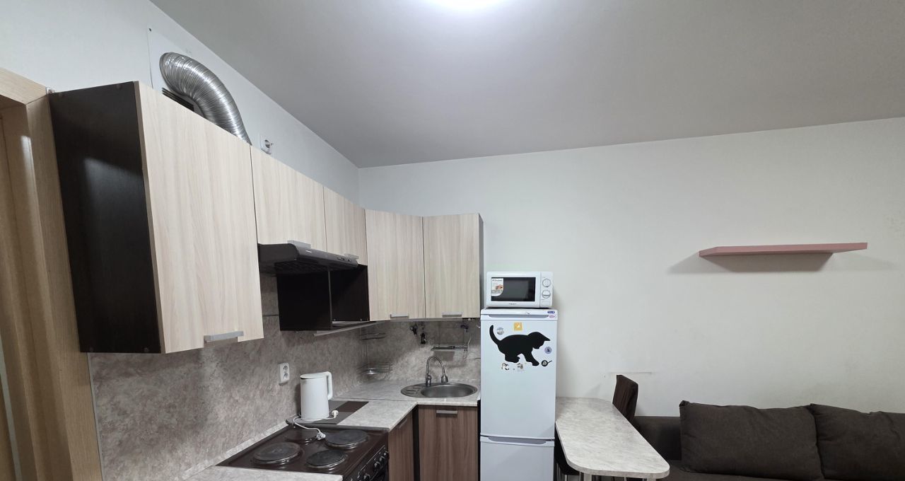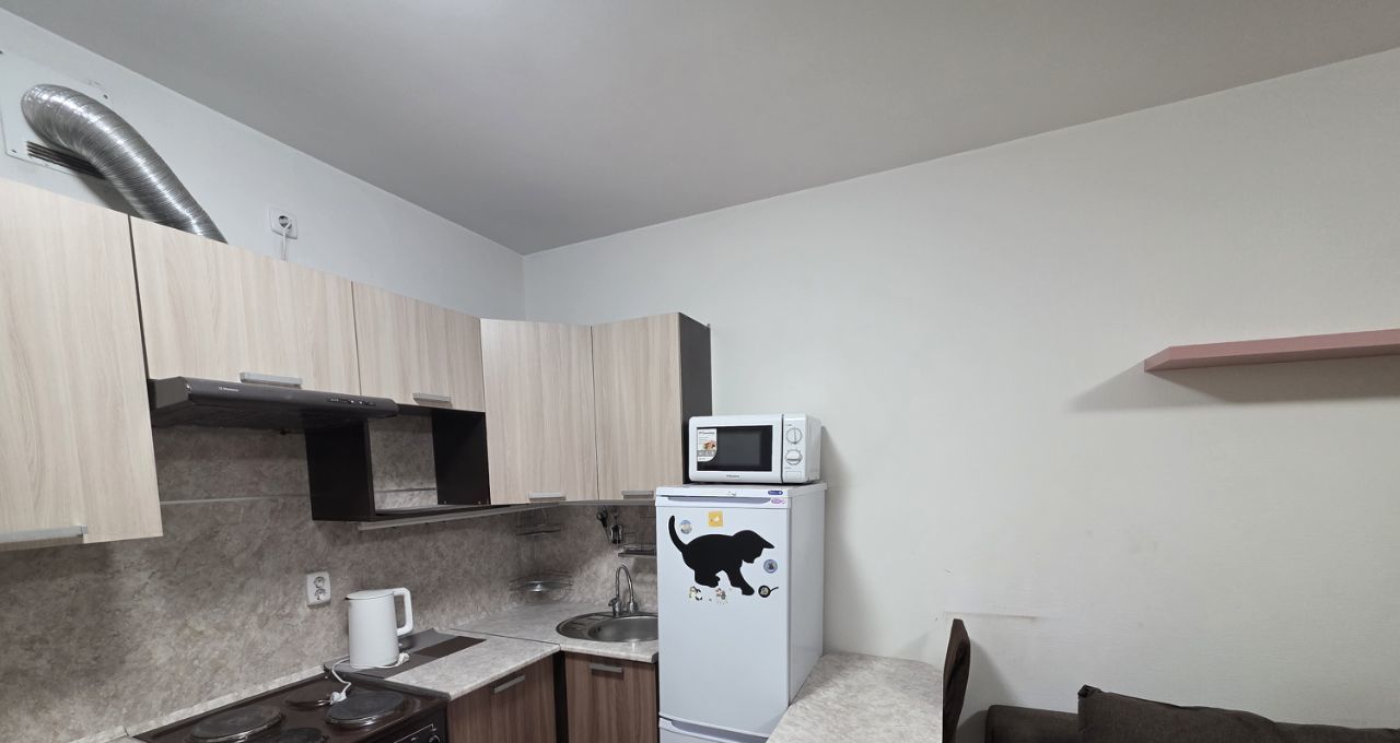 Квартира студия со всем необходимым для проживания: мебель, техника, посуда, постельные принадлежности.