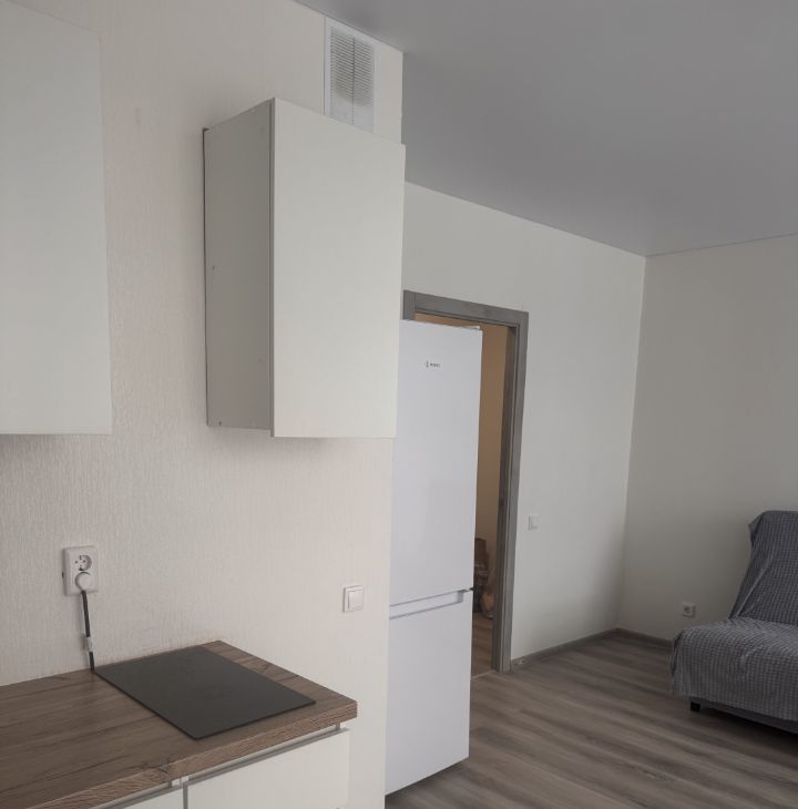 Сдается студия с мебелью (диван, стол, стулья, стеллаж ) и бытовой техникой (стиральная машина, чайник, варочная панель, холодильник)