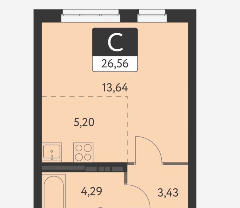Студия Свердловская область, Екатеринбург ул. Академика Парина, 33 (26.0 м²)